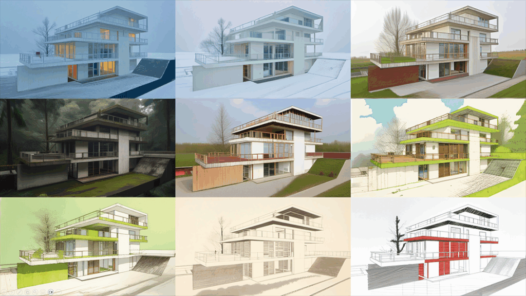 W najnowszej wersji Archicada rozszerzono funkcje Wizualizatora SI. Narzędzie, oparte na generatywnym modelu Stable Diffusion, umożliwia teraz generowanie obrazów na podstawie tylko tekstu (text-to-image), wczytywanie własnego obrazu bazowego (image-to-image, a nie tylko z okna 3D) oraz wprowadzanie zmian w wybranych fragmentach wygenerowanego obrazu. Dzięki temu można szybciej tworzyć koncepcje, szukać inspiracji i sprawniej testować alternatywne rozwiązania.