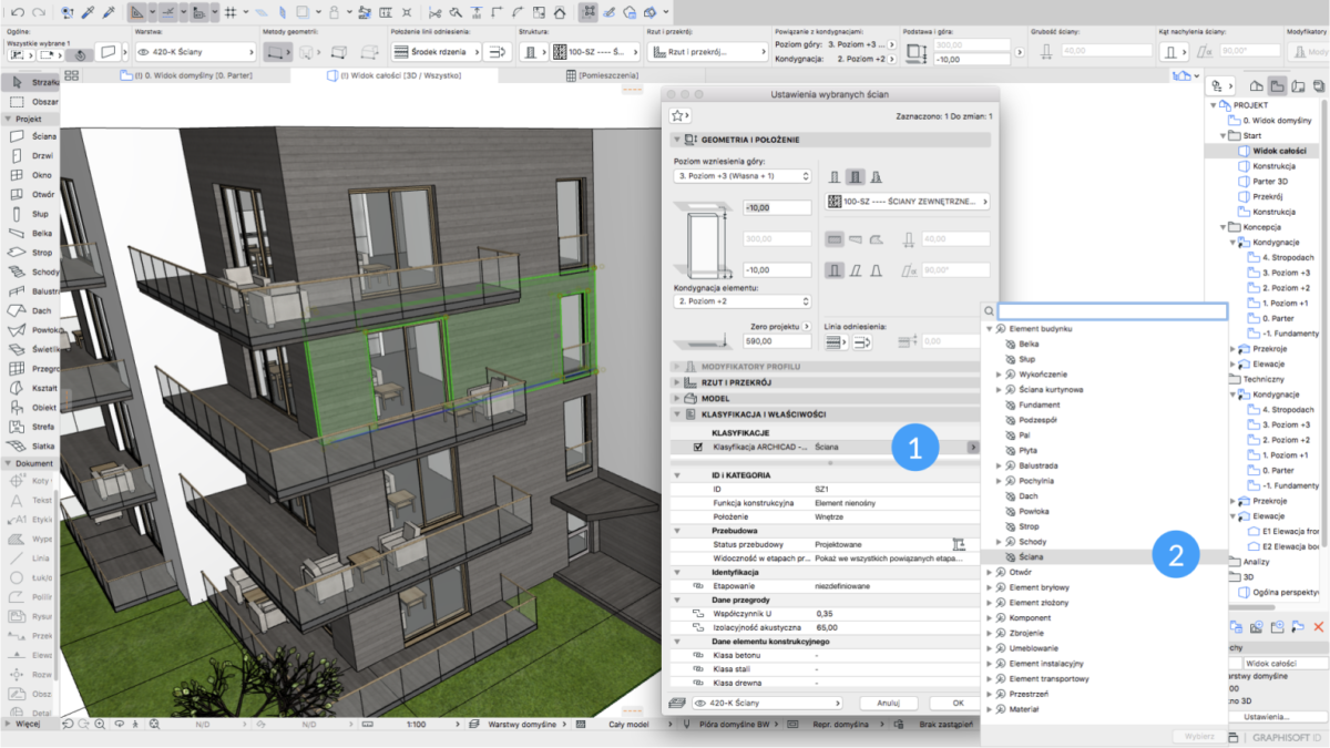 W ARCHICADzie klasyfikacja wykorzystywana jest przede wszystkim do:
