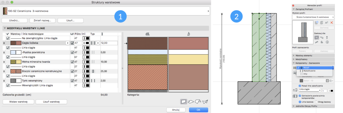 Na rysunku nr 4 pokazana została lokalizacja tych opcji w definicji struktury warstwowej i profilu złożonego.