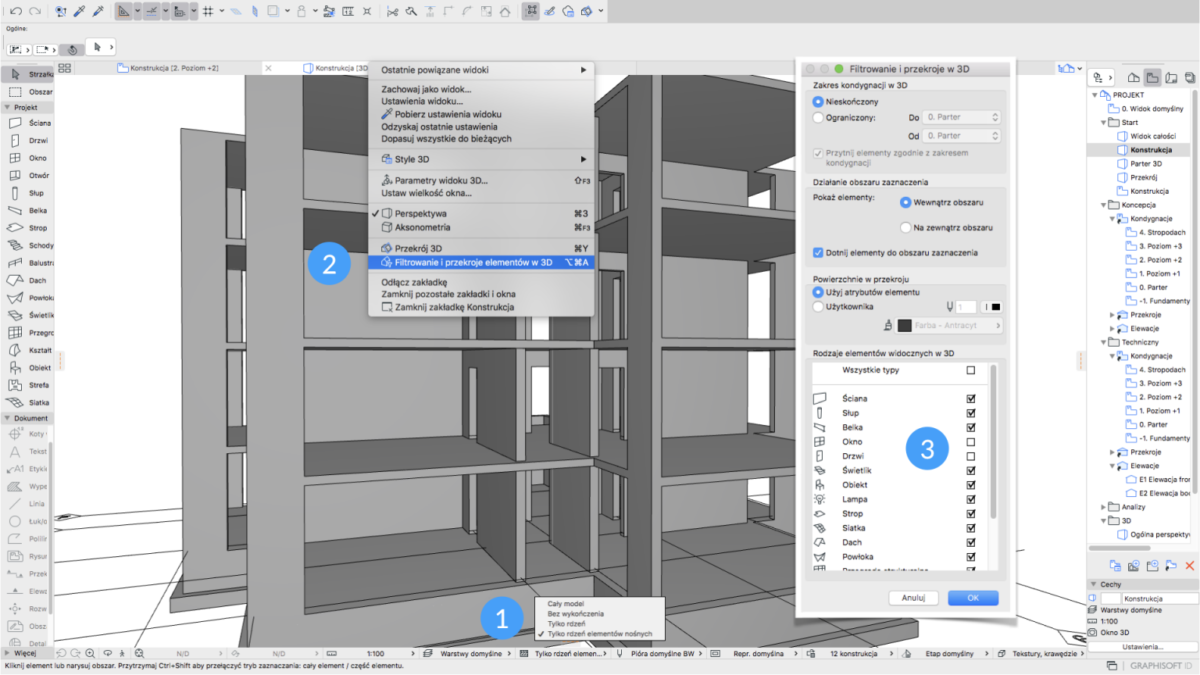 Filtrowanie widoku ARCHICADa