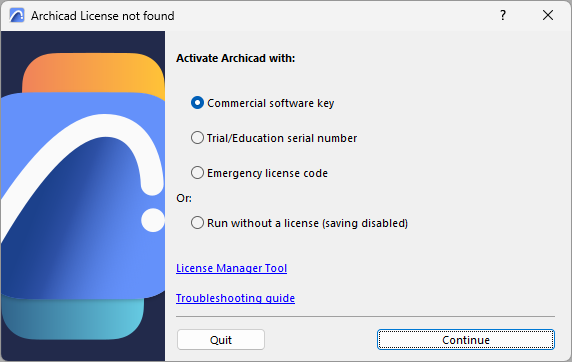 Funkcja automatycznej aktualizacji w programie Archicad zadziała z licencją pojedynczą lub licencją NET1. Należy jednak pamiętać, że licencje NET zawierające więcej stanowisk muszą zostać zaktualizowane ręcznie w aplikacji Licence Manager Tool. Licencje pojedyncze oraz NET1 mogą również zostać zaktualizowane ręcznie, jeśli przed uruchomieniem programu Archicad skorzystasz z aplikacji License Manager Tool.