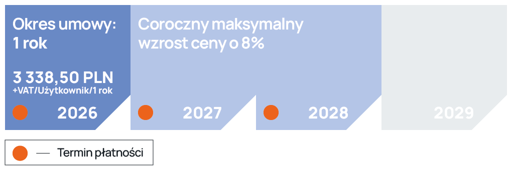 Niższy koszt wejścia w połączeniu z subskrypcją dostępną nawet na 1 miesiąc pozwala w płynny sposób zmieniać ilość licencji w odpowiedzi na zapotrzebowanie.