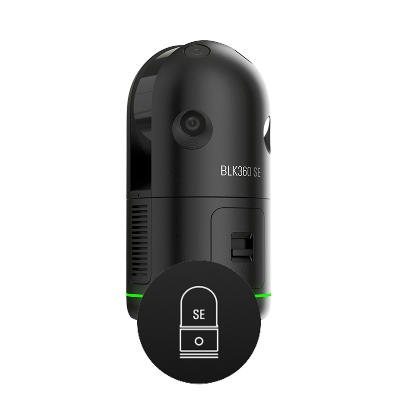 BLK 360 SE może zarejestrować nawet 340 000 punktów na sekundę i wykonać pełny skan z obrazami sferycznymi w mniej niż 30 sekund. Kompaktowy rozmiar (155 × 80 mm) i waga zaledwie 850 g z baterią sprawiają, że BLK360 SE można bez problemu przenosić i wykorzystywać w różnych lokalizacjach.