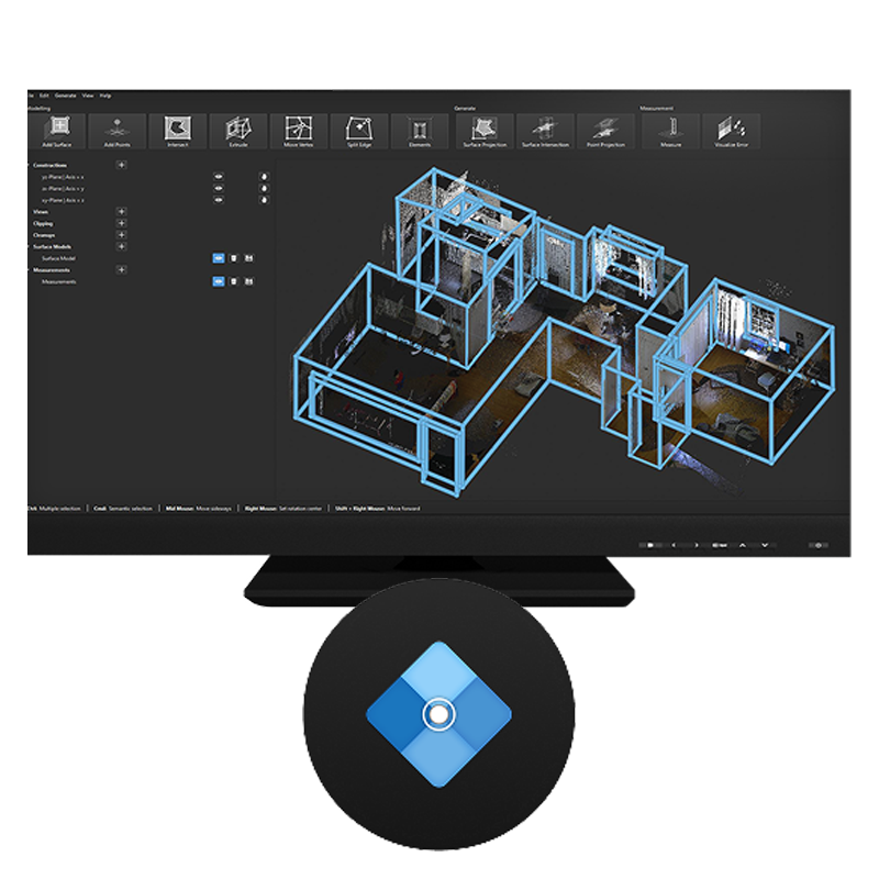Intuicyjne oprogramowanie do przetwarzania i rejestracji danych skanowania, pozwalające na szybkie tworzenie dokładnych modeli 3D dzięki automatyzacji wykrywania powierzchni bezpośrednio na chmurze punktów.